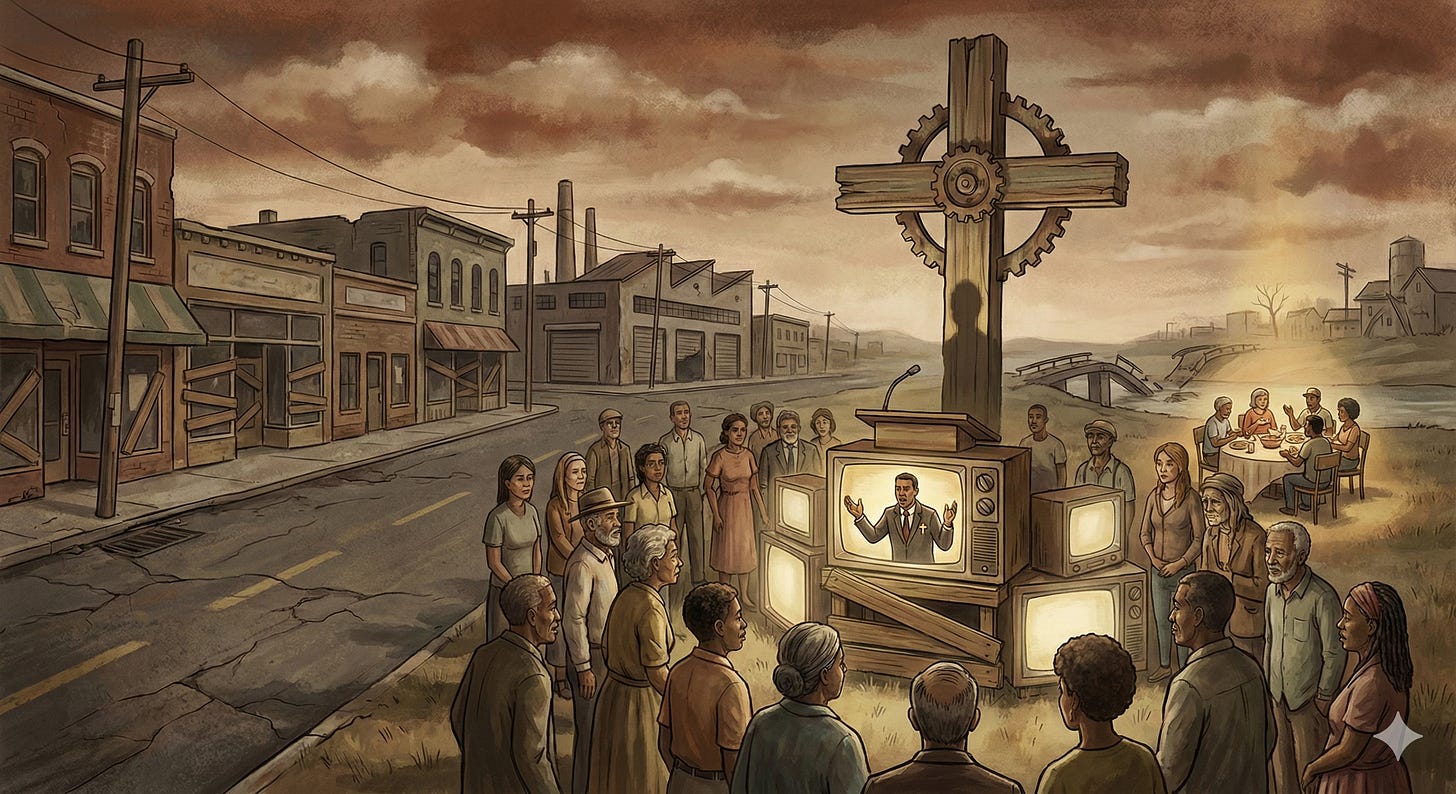 Today’s churches could be doing this work. Should be doing this work. Some corners of it are, and have been all along. Black churches have largely refused the racialized narrative, for obvious reasons. Mainline Protestants and progressive Catholics have pushed back, sometimes at great cost. Even within evangelicalism, there are voices calling for repentance. But too much of white American Christianity has made a different choice: to baptize the grievance, to bless the resentment, to ride this wave of Christian nationalism instead of naming it as the idolatry it is.